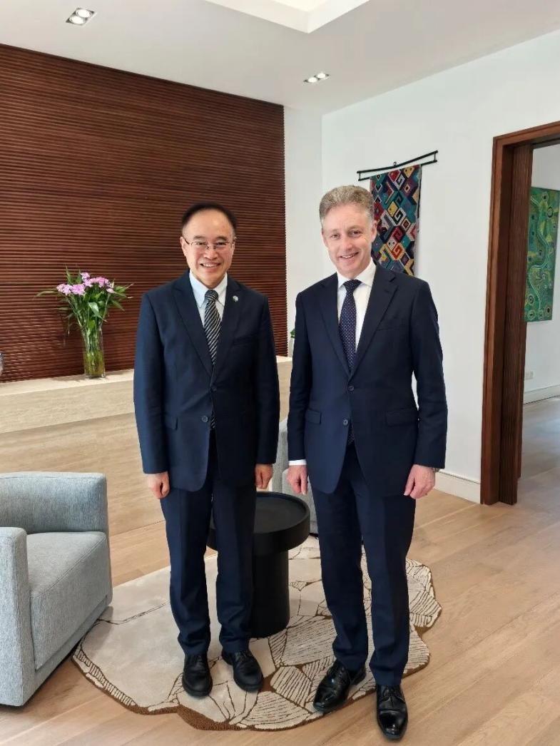 2025年3月5日,教育部长江学者特聘教授、同济大学政治与国际关系学院/中国战略研究院院长门洪华教授与来沪的澳大利亚驻华大使吉思德(Scott Dewar)先生在澳大利亚驻上海总领事官邸会见,双方围绕中澳关系、国际安全局势、人工智能等议题进行了深入交流。澳大利亚驻上海总领事约翰·威廉姆斯(John Williams)、澳大利亚驻上海总领事馆领事芮明真(Meg Reid)、乔丹·艾特肯(Jordan Aitken)和澳大利亚驻华大使馆相关官员,同济大学政治与国际关系学院副院长钟振明教授、中央网信办-教育部网络空间国际治理研究同济大学基地常务副主任鲁传颖教授一同参加了会见。