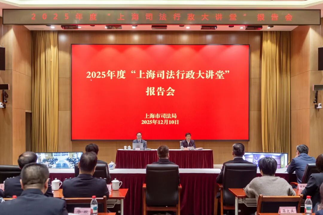 2025年12月10日上午,2025年度“上海司法行政大讲堂”第三场报告会开讲。同济大学政治与国际关系学院院长、中国战略研究院院长门洪华教授作专题辅导报告。报告会上,门院长聚焦世界百年变局和新动荡变革期的国际形势,系统剖析当前国际形势前沿动态,深入阐述了新时代新征程中国的顶层设计和应对之策。整场报告主题鲜明、视野宏阔、语言生动、见解独到,对上海司法行政系统广大党员干警进一步深刻理解把握国际形势,推动司法行政工作高质量发展,具有很强的指导意义。