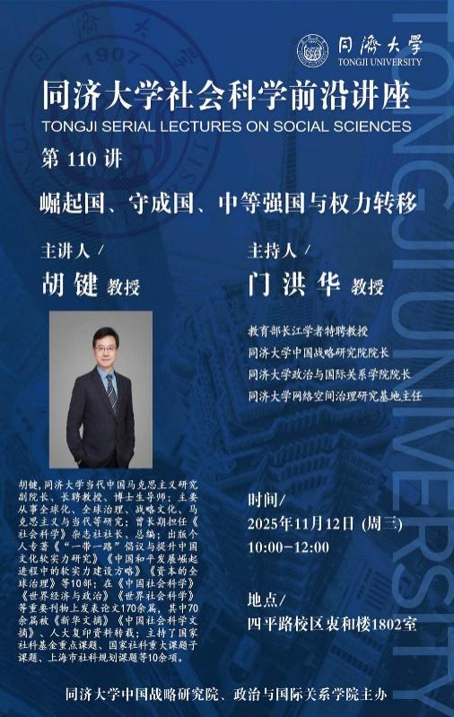 依托高等讲堂,汇聚学界智慧,赋能学科发展。2025年,同济大学中国战略研究院持续举办“同济大学社会科学前沿讲座”,邀请多位知名学者及外交官登台论道,为学院师生带来一场场兼具深度与广度的学术盛宴。