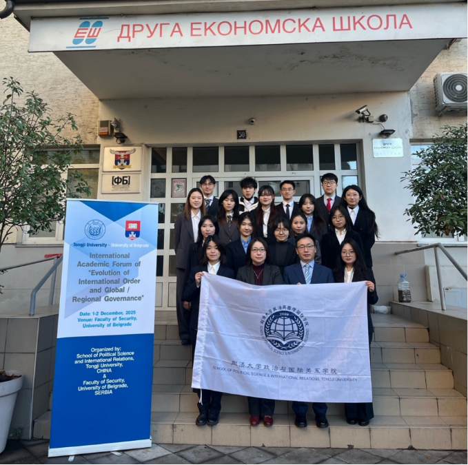 2025年11月30日至12月3日,同济大学政治与国际关系学院师生代表团成功出访塞尔维亚,与贝尔格莱德大学安全学院联合举办主题为“国际秩序演进与全球和地区治理”的研究生学术论坛。期间,代表团还参访中国驻前南联盟被炸使馆旧址、中国驻塞尔维亚大使馆及塞尔维亚国家博物馆等。本次出访依托于同济大学研究生国际化项目,由同济大学政治与国际关系学院副院长钟振明教授和欧洲研究中心主任宋黎磊教授共同带队,国政学院十五名硕博研究生参加。此次塞尔维亚之行,使代表团成员深刻体会到在全球局势深刻演变的背景下,中塞两国在教育、人文与学术领域合作的重要意义。通过与贝尔格莱德大学及多家机构的深入交流,师生们全面加深了对塞尔维亚社会发展、区域政治动态及文化传统的认识,进一步拓展了国际视野与学术研究思路。