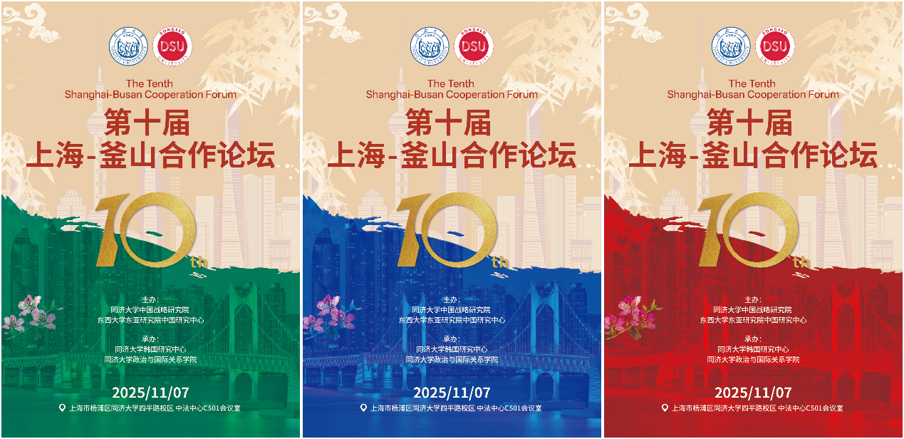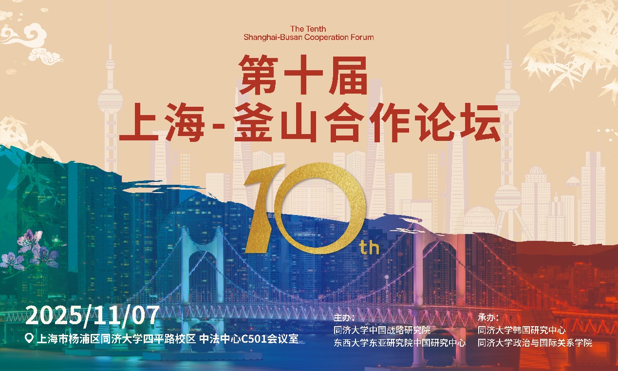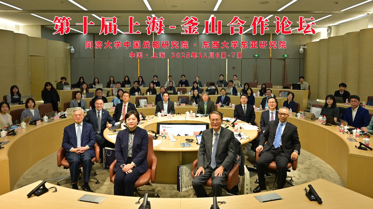 2025年11月7日,由同济大学中国战略研究院、韩国东西大学东亚研究院中国研究中心主办、同济大学政治与国际关系学院、同济大学韩国研究中心承办的第十届上海-釜山合作论坛在同济大学成功举办。同济大学党委副书记曹静、韩国前驻华大使/东西大学东亚研究院院长/韩中友好协会会长辛正承出席开幕式并致辞,中国驻釜山总领事陈日彪、韩国驻上海总领事金英俊视频致辞。开幕式由教育部长江学者特聘教授、同济大学政治与国际关系学院/中国战略研究院院长门洪华教授主持。