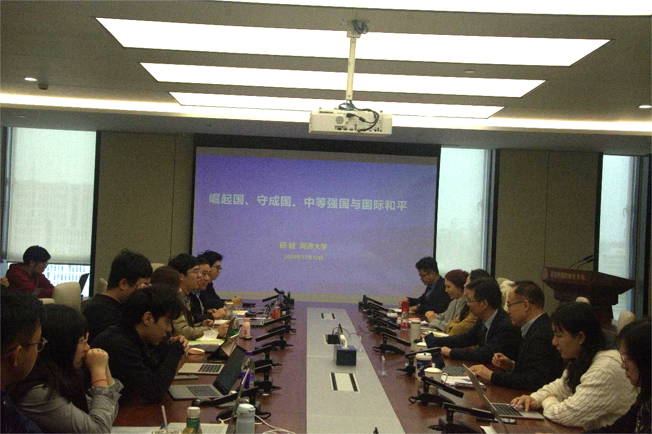 门洪华院长对胡键教授的到来表示热烈欢迎。他指出,胡键教授担任同济大学长聘教授、当代马克思主义研究院副院长,曾长期在社科院系统工作,担任《社会科学》杂志社社长/总编。胡教授研究领域广泛,涵盖马克思主义理论、国际关系史、大国兴衰等多方向,学术成果丰硕,尤其在历史案例分析与理论构建方面具有深厚造诣。