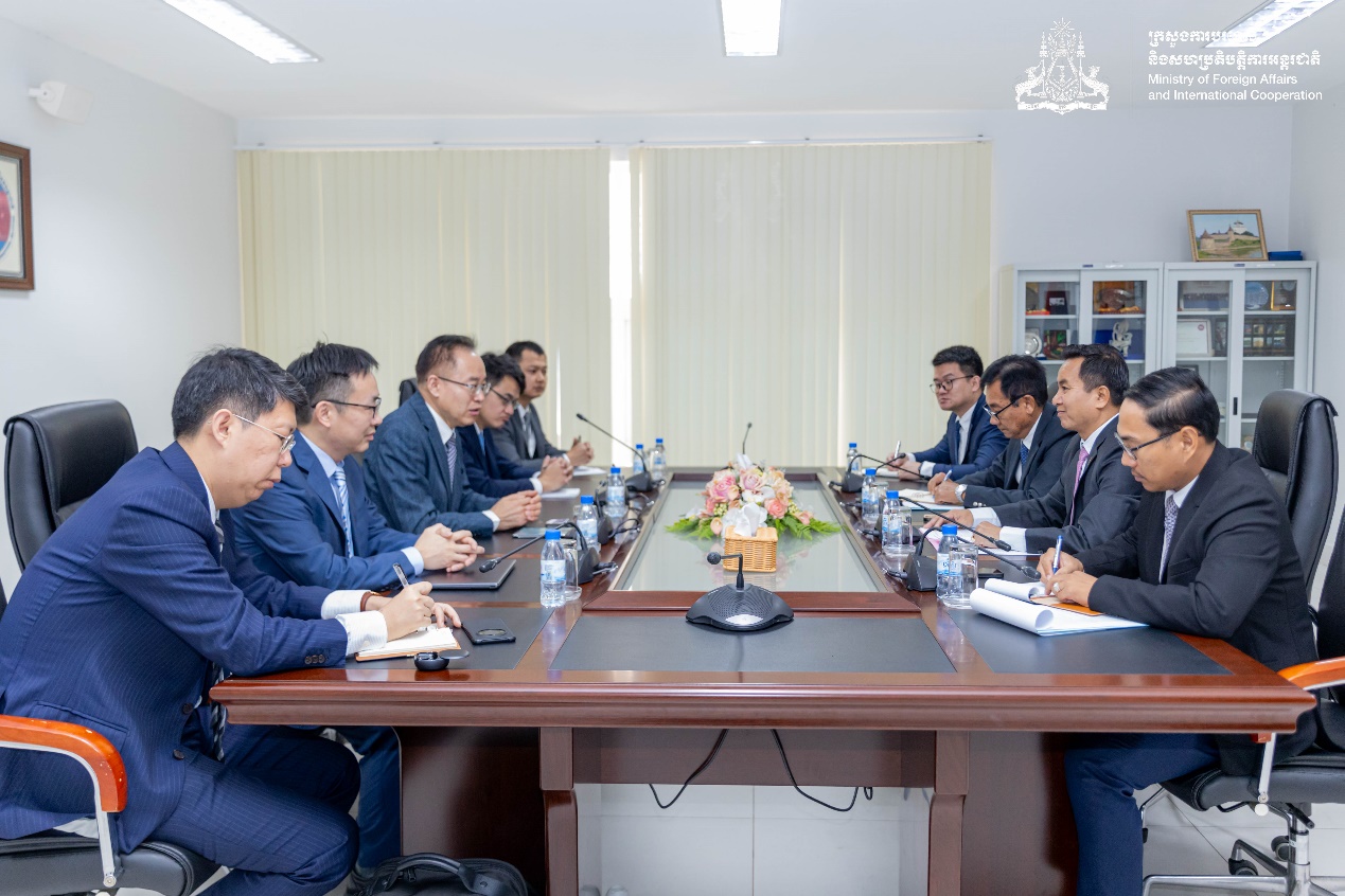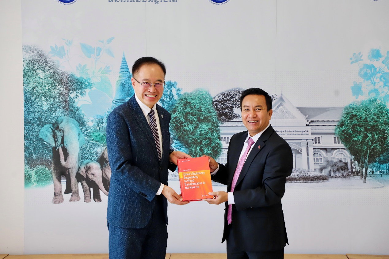 1月15日,同济大学一行应邀拜访柬埔寨外交部国家外交和国际关系研究院,柬埔寨外交与国际合作部国务秘书(副部长级)、柬埔寨外交和国际关系研究院院长凯·索万拉塔纳(Khy Sovanratana)、柬埔寨外交和国际关系研究院副院长乔·里提亚(Khieu Rithiya)、柬埔寨外交和国际关系研究院公共关系部主任春·索克拉(Chheun Sokla)等全程参与交流。索万拉塔纳对同济大学一行的到来表示欢迎,并对研究院的情况进行了全面介绍。门洪华院长和凯·索万拉塔纳院长着重讨论了双方在外交培训和国际事务领域开展务实合作的潜在领域,特别强调了联合创立国际论坛的可行性与必要性。同济大学一行的拜访活动,也获得了柬埔寨外交部官方媒体的报道宣传。