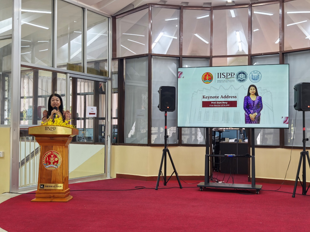随后,金边皇家大学副校长欧姆·拉维教授在主旨演讲中表示,在全球不确定性上升的背景下,加强学术合作与知识交流,有助于促进区域稳定与绿色发展,并为全球南方国家探索更加包容、可持续的发展路径提供智力支持。