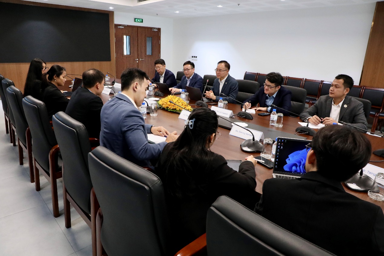 1月13日上午,同济大学一行与柬埔寨洪森亲王与夫人奖学金委员会和协会(A.M.T.)的主要负责人进行交流座谈,柬埔寨公共工程与运输部国务秘书(副部长级)/柬中友好协会副主席/A.M.T.委员会教育机构办公室主任刘凡(LAU Vann)、柬埔寨首相内阁办公厅顾问/A.M.T.委员会教育机构办公室副主任郑贤利(TRANG Ly)、柬埔寨卫生部副国务秘书陈财龙(HENG Sothy)、柬埔寨工业和科技创新部副司长、柬埔寨公共工程与运输部顾问何树林(HEANG Sotheara)等A.M.T.委员会成员参与讨论。柬埔寨洪森亲王与夫人奖学金委员会系柬埔寨政府于2007年成立的官方机构,并于2014年成立柬埔寨洪森亲王与夫人奖学金协会,隶属于柬埔寨首相办公厅。2007-2023年,柬埔寨现任首相洪玛奈亲王担任委员会委员长;2024年至今,委员会的现任委员长为柬埔寨第一夫人碧占。A.M.T.长期致力于支持柬埔寨的优秀学生和贫困学生接受高等教育,特别是通过广泛的国际交流为柬埔寨学生赴国外留学提供教育指导和经济支持。