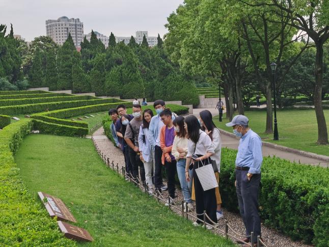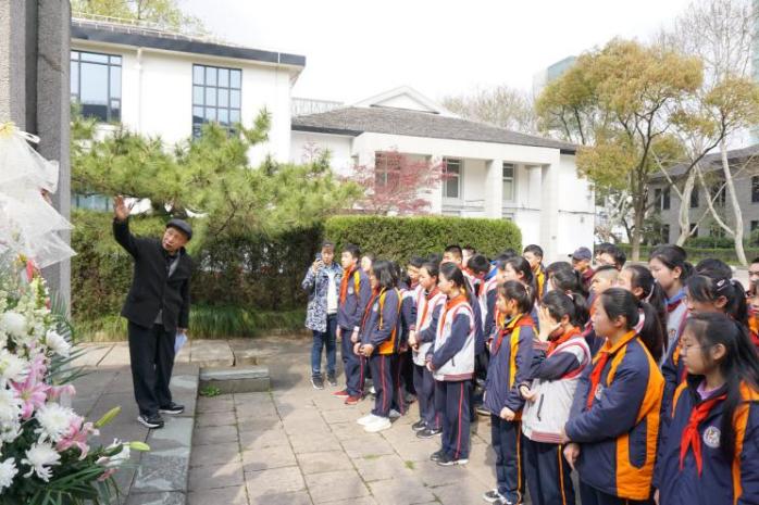 徐筠老师深耕中共党史与思政教学。退休21年来,他并未选择安逸,而是作为关工委的核心力量,带领师生重读《共产党宣言》。他将《共产党宣言》视作指引前行的灯塔,强调学习必须与实际结合,教导学子要“脚踏实地,将理念转化为行动”。图为徐筠老师带学生党员前往龙华烈士陵园瞻仰。