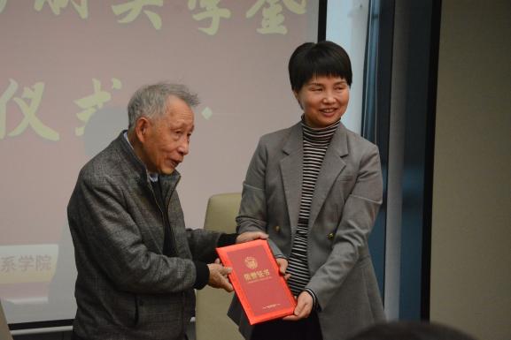 随后,在热烈的掌声中,徐筠老师与校友与基金工作办公室主任郑晓蕾共同签署了捐赠协议,随后郑主任向徐筠老师颁发了捐赠证书,并对徐老师在退休后依然心系学校发展,倾情捐资助学的善举表达了崇高的敬意。